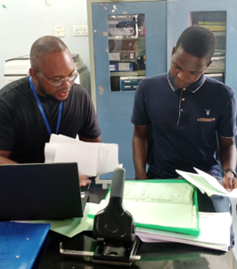 (Emmanuel Mphepo and data collection officer performing a data quality assessment)
