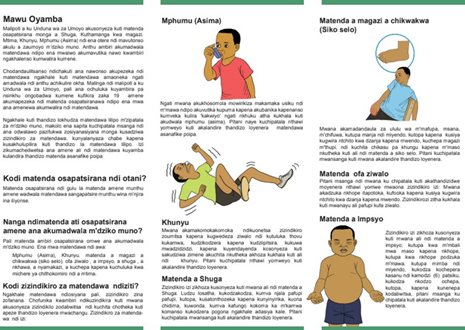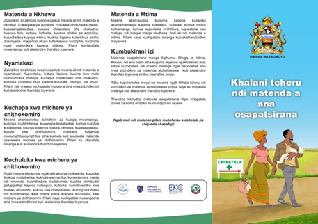 (Front and back of an information leaflet on paediatric NCDs in the major national language Chichewa)